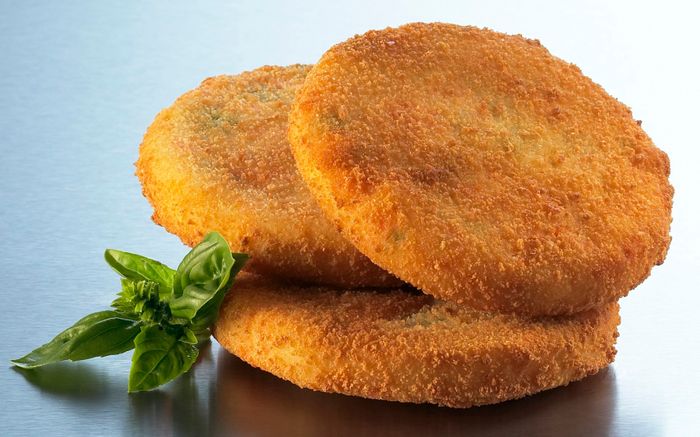 Vegetarian burger that contains corn, carrot, peas, onion and potato lightly coated in a golden crumb.