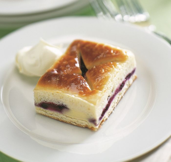Soft custard sitting alongside a rich apple berry blend is encased within golden pastry. Warm through and serve.