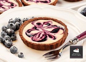 A tantalising trio of tangy blueberry and creamy baked cheesecake in a gluten free chocolate tart shell.