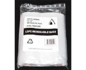 - RESEALABLE LDPE BAG 255 x 305mm 50um x 100 (10)