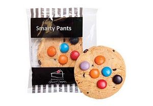 A favourite for kids of all ages. A delicious cookie with dark chocolate chunks and colourful smarty buttons.