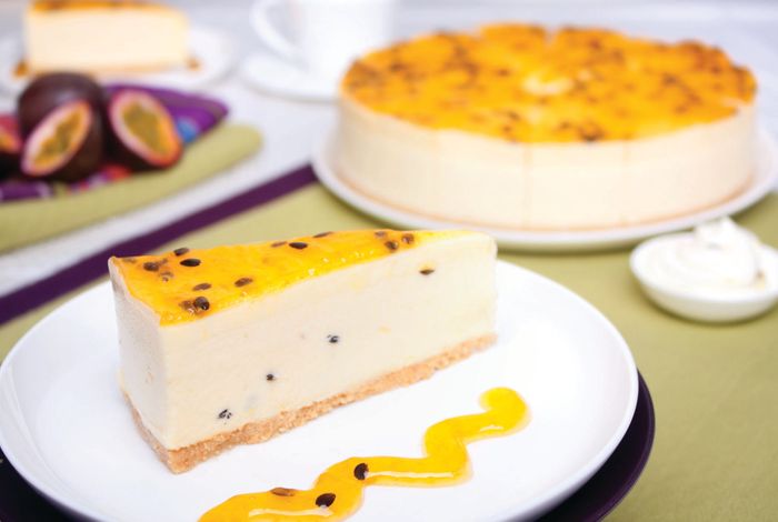 A classic combination of smooth and creamy cheesecake glazed with tropical passion fruit.