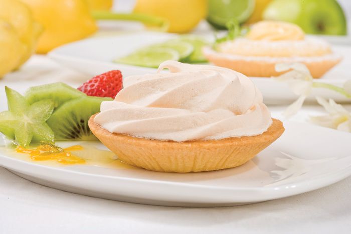 Classic citrus filling in a sweet tart shell, topped with a frothy soft meringue.